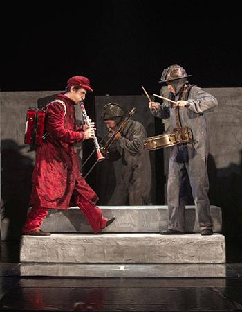 Il lavoro d’attore si mescola al lavoro sul clown, alla manipolazione di oggetti e alla musica dal vivo, per accompagnare con leggerezza questa sorta di viaggio dal buio alla luce, restituendo ai personaggi e al loro sogno di libertà la dolcezza scanzonata del clown.