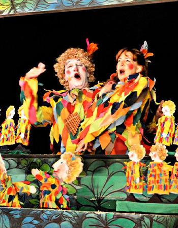 La favola del flauto magico in stile operina è un particolare allestimento del Flauto Magico che segna l’incontro sulla scena tra i burattini di Emanuele Luzzati e Bruno Cereseto e la musica di Mozart. La musica viene suonata e cantata dal vivo da un ensemble di musicisti, attori e cantanti lirici che eseguono le principali arie e duetti del capolavoro di W. A. Mozart.